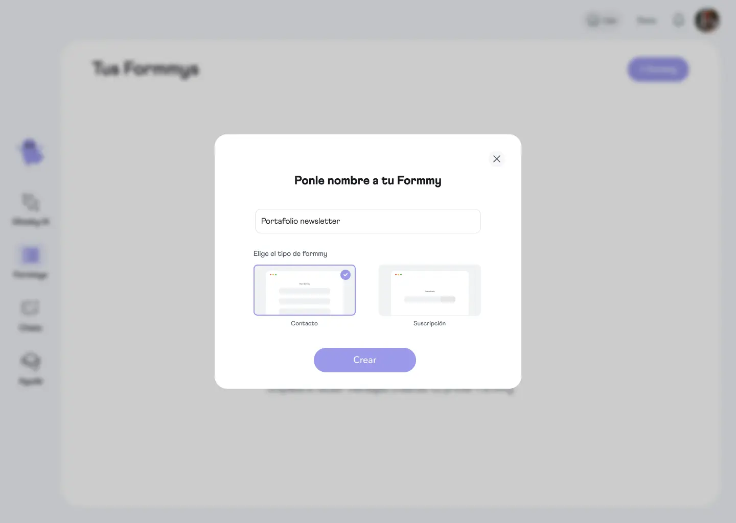 Crea tu Formmy en menos de 5 minutos, sin código, sin complicaciones y sin tecnicismos. Solo unos clics y listo.